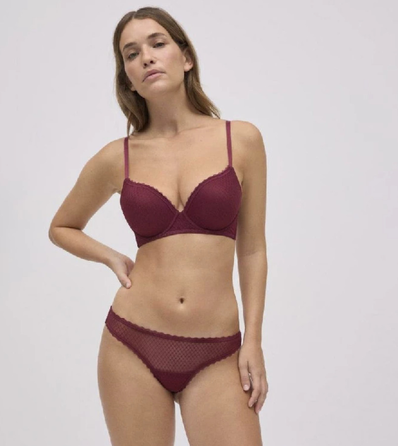 Ysabel Mora Σετ Μπορντό Push-Up Σουτιέν Με Μπανέλες & String.